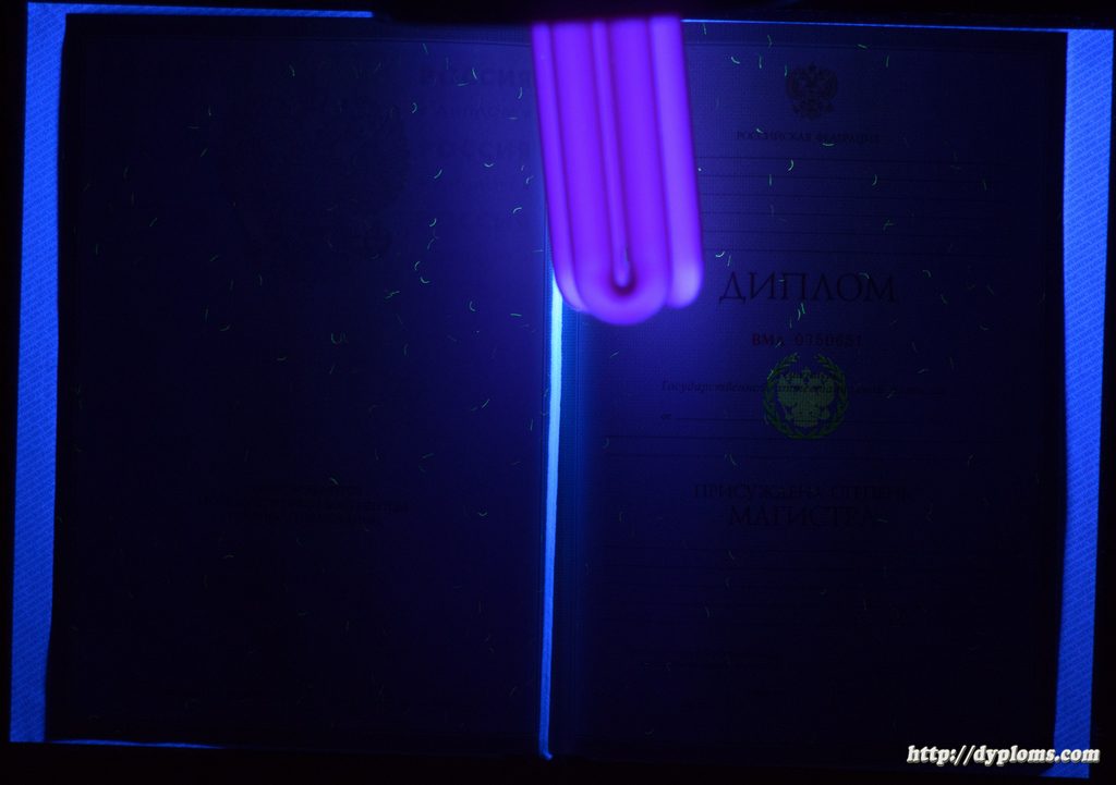 - Диплом нового образца с подлинным государственным знаком и защитными элементами на нем.